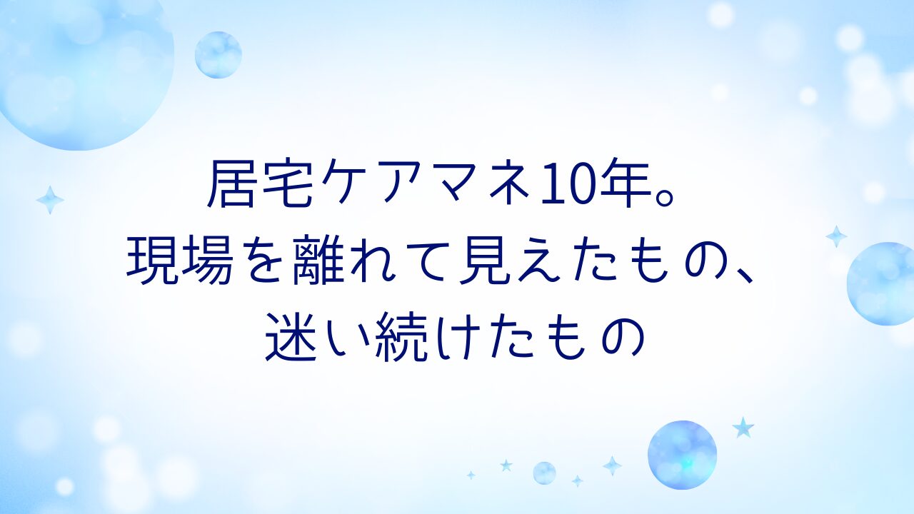 居宅ケアマネ10年。現場を離れて見えたもの、迷い続けたもの